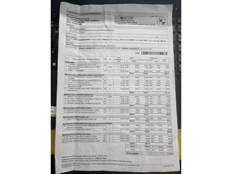Na każdy motocykl wystawiamy Fakturę VAT-marża która zwalnia Państwa odprowadzenia opłaty skarbowej.