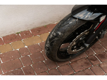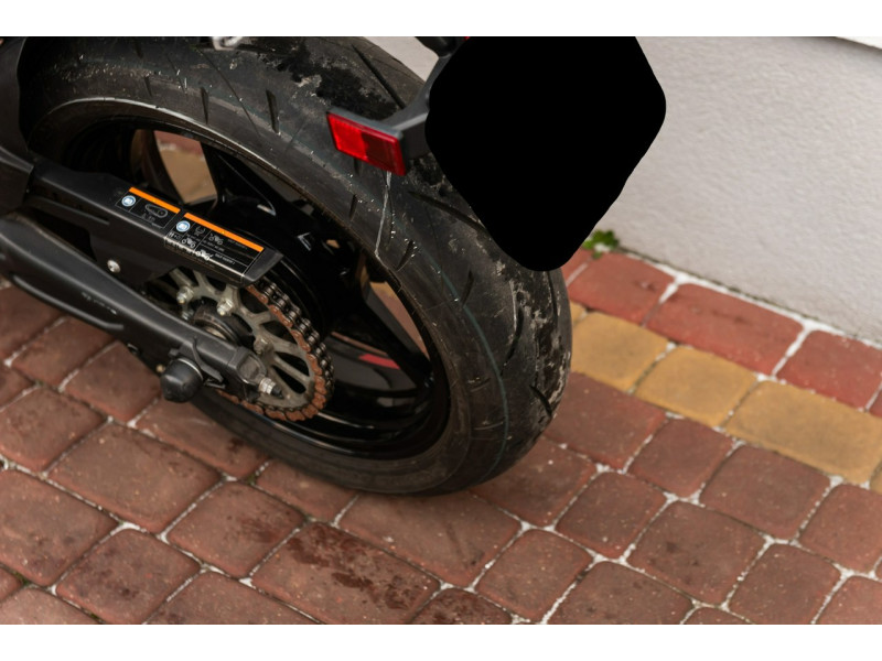 Motocykl miał niewielką parkingową wywrotkę na prawą stronę