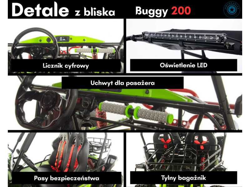 ASIX Buggy 200 to dynamiczny buggy o pojemności 200 cm³, który łączy w sobie sportowy charakter, zwrotność i komfort jazdy. Zaprojektowany z myślą o użytkownikach, którzy chcą frajdę z jazdy w terenie, lekkie sporty off-road oraz rekreację poza utwardzonymi drogami. To idealna propozycja dla fanów adrenaliny, rodzinnych wypadów poza asfalt, a także osób, które cenią łatwość prowadzenia i solidne wykonanie.