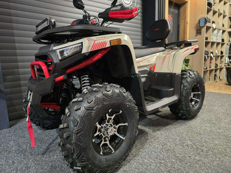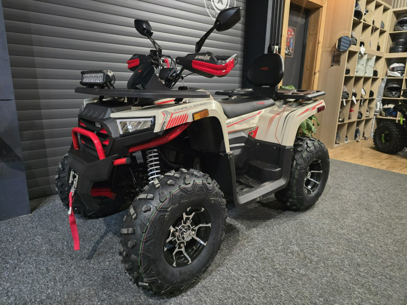 CHALLENGER 250RR to pojazd off-roadowy napędzany silnikiem o pojemności 250cm3. Jednostka napędowa wyposażona w chłodnicę oleju oraz wałek wyrównoważający. Duży gabarytowo quad zestawiony na 10-calowych, aluminiowych felgach. Pojazd posiada automatyczną skrzynię biegów z biegiem wstecznym (1+1). Głównymi elementami wyposażenia są między innymi: duży, cyfrowy wyświetlacz, oświetlenie LED z kierunkowskazami, wyciągarkę 2000lbs, hak holowniczy, gniazdo USB oraz zapalniczki, a także dodatkowy panel LED