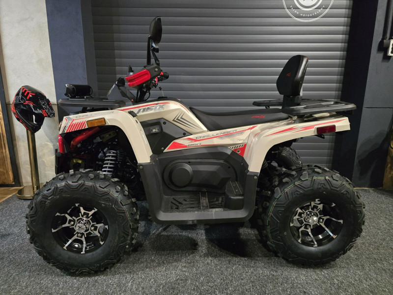 CHALLENGER 250RR to pojazd off-roadowy napędzany silnikiem o pojemności 250cm3. Jednostka napędowa wyposażona w chłodnicę oleju oraz wałek wyrównoważający. Duży gabarytowo quad zestawiony na 10-calowych, aluminiowych felgach. Pojazd posiada automatyczną skrzynię biegów z biegiem wstecznym (1+1). Głównymi elementami wyposażenia są między innymi: duży, cyfrowy wyświetlacz, oświetlenie LED z kierunkowskazami, wyciągarkę 2000lbs, hak holowniczy, gniazdo USB oraz zapalniczki, a także dodatkowy panel LED
