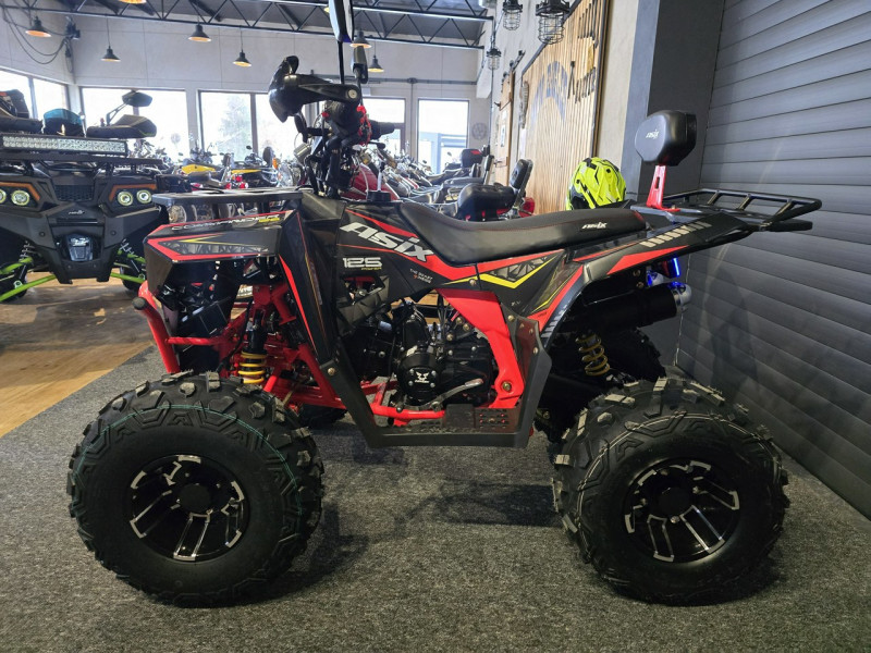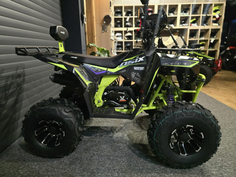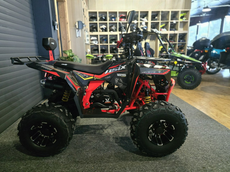 Quad ASIX Commander to pojazd z silnikiem czterosuwowym o pojemności 125cm3 dla dzieci od 9 lat. Przeprawowy quad z rozrusznikiem elektrycznym, skrzynią automatyczną lub półautomatyczną oraz z biegiem wstecznym. Model charakteryzuje się solidną konstrukcją ramy oraz mocnym zawieszeniem zestawionym na 8-calowych kołach