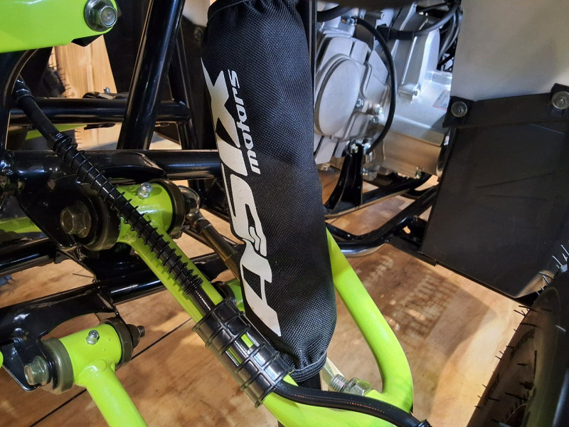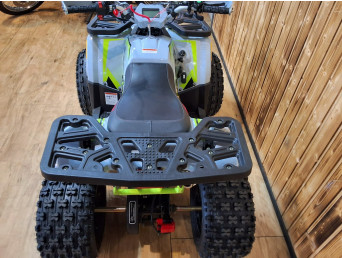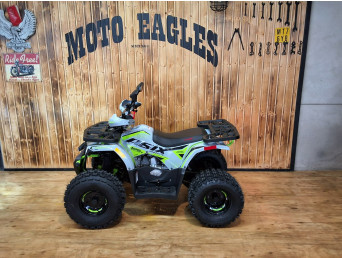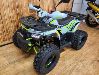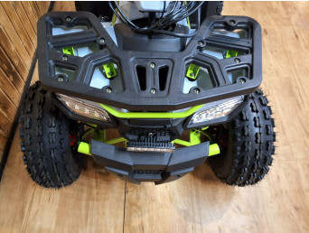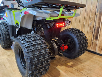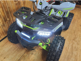 Quad HUNTER to pojazd odpalany na rozrusznik elektryczny. Napędzany jest silnikiem czterosuwowym o pojemności 125cm3, ze skrzynią automatyczną +wsteczny. Przeprawowy quad z oświetleniem LED przód-tył, licznikiem cyfrowym, lusterkami, zrywką bezpieczeństwa oraz regulacją prędkości i solidnym zawieszeniem na kołach 8″