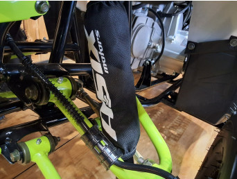 Z przodu wielowahaczowe Dual Arm ze sworzniami oraz regulowanymi amortyzatorami Dual Shock Absorber. Zapewniają płynność poruszania się w terenie przy zachowaniu odpowiedniej przyczepności. Z tyłu solidny wahacz z centralnie umieszczonym, amortyzatorem Monoshock wyposażonym w regulacje twardości