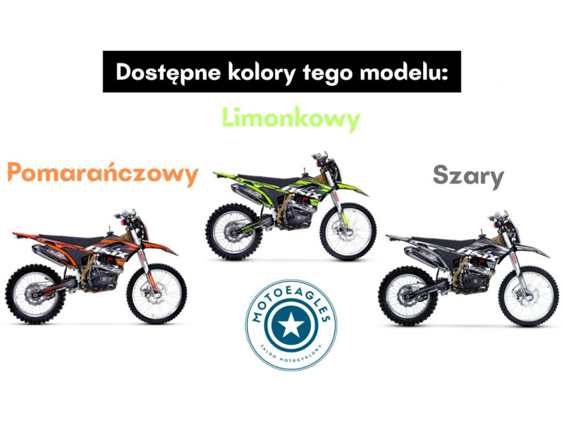 Motocykl nie posiada homologacji drogowej – jest przeznaczony wyłącznie do jazdy terenowej.