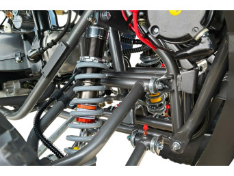 Diabolini Hammer 300 Pro posiada stabilne zawieszenie oraz szeroki rozstaw kół, który zapewnia dobrą kontrolę nad pojazdem podczas jazdy w terenie. Konstrukcja quada została zaprojektowana tak, aby dobrze radził sobie na nierównych drogach, szutrze czy leśnych ścieżkach.
