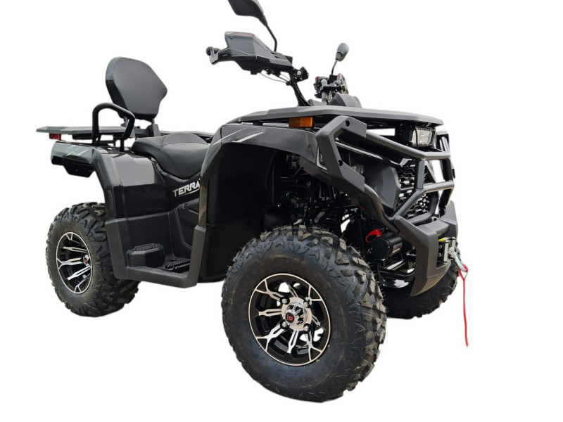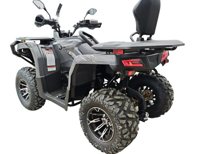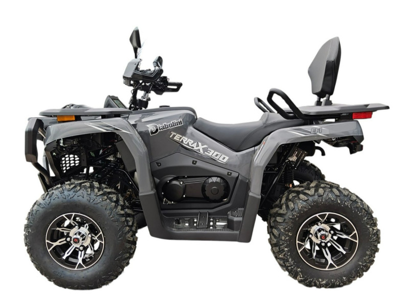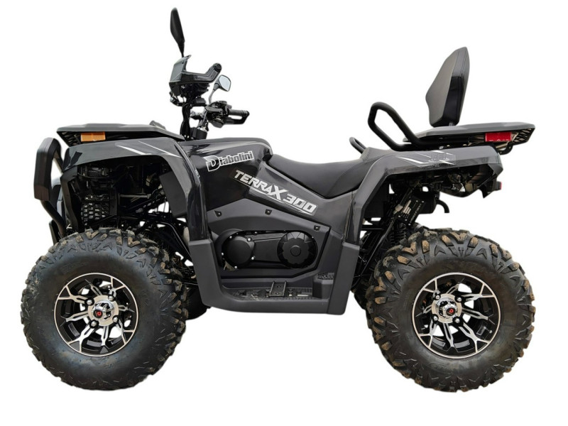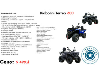 Diabolini Terrax 300 to quad terenowy, który łączy prostą konstrukcję, wygodną obsługę oraz praktyczne wyposażenie. Dzięki automatycznej skrzyni biegów i stabilnej konstrukcji jest łatwy w prowadzeniu i dobrze sprawdzi się podczas rekreacyjnej jazdy w terenie.