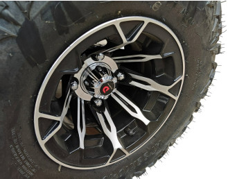 Duże opony terenowe zamontowane na aluminiowych felgach poprawiają przyczepność oraz stabilność podczas jazdy po luźnej nawierzchni.
