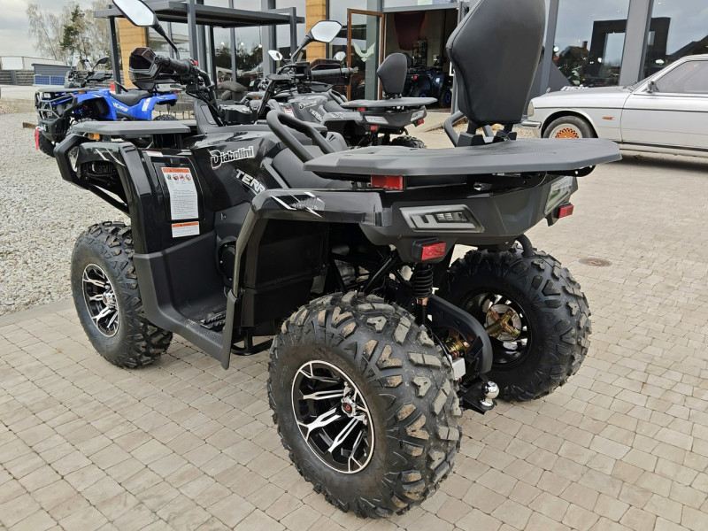 Diabolini Terrax 300 to quad terenowy, który łączy prostą konstrukcję, wygodną obsługę oraz praktyczne wyposażenie. Dzięki automatycznej skrzyni biegów i stabilnej konstrukcji jest łatwy w prowadzeniu i dobrze sprawdzi się podczas rekreacyjnej jazdy w terenie.