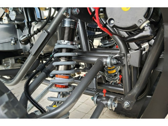 Diabolini Hammer 300 Pro posiada stabilne zawieszenie oraz szeroki rozstaw kół, który zapewnia dobrą kontrolę nad pojazdem podczas jazdy w terenie. Konstrukcja quada została zaprojektowana tak, aby dobrze radził sobie na nierównych drogach, szutrze czy leśnych ścieżkach.