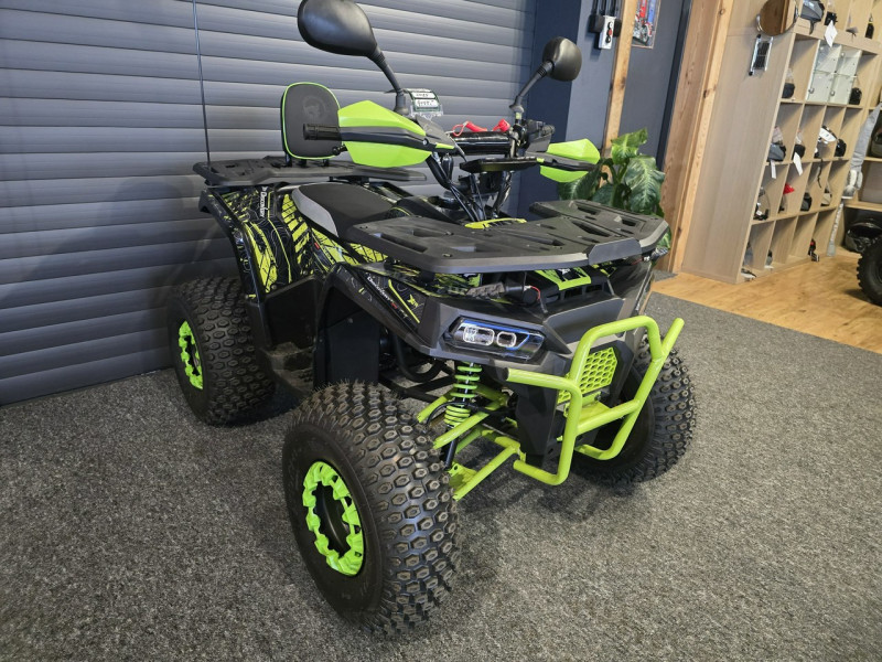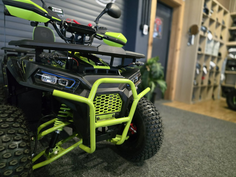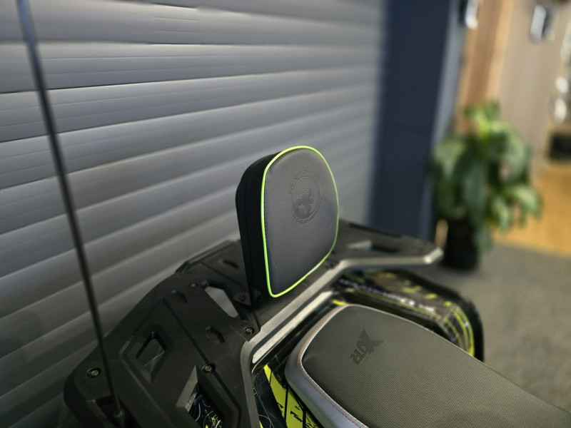 Wyposażony jest między innymi w licznik cyfrowy, licznik motogodzin, oświetlenie LED, kierunkowskazy, handbary, oparcie, lusterka oraz zrywkę bezpieczeństwa