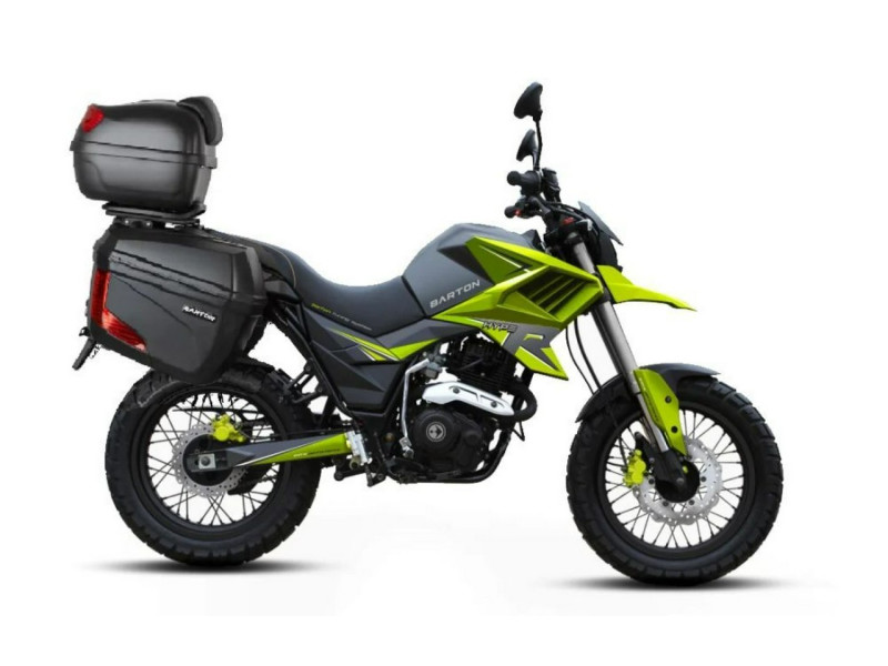 Barton Hyper to motocykl w stylu enduro. Jego wysoka pozycja i spory prześwit podkreślają terenowy charakter. Wersja wyposażona w kufry to świetna propozycja na turystyczne enduro dla osób z prawem jazdy kat. B. Dodatkowa przestrzeń bagażowa pozwala zabrać wszystkie potrzebne rzeczy i ruszyć w nieznane. Podróże na motocyklu jeszcze nigdy nie były tak komfortowe jak teraz.