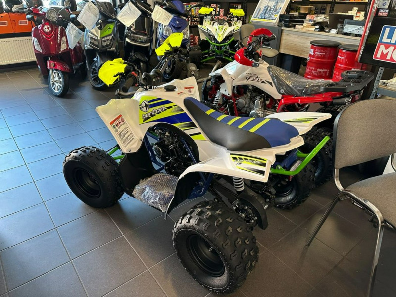 Pentora 125 to solidny quad, który zachwyca stosunkiem nieprzeciętnie wysokiej jakości do atrakcyjnej ceny. Napędza go sprawdzony, 4-suwowy silnik o pojemności 125 ccm gwarantujący wiele emocji w terenie i na twardej nawierzchni. Napęd przekazywany jest za pomocą 3-stopniowej, półautomatycznej skrzyni biegów, która dla wygody posiada także bieg wsteczny. Automatyczne sprzęgło sprawia, że nie trzeba przejmować się manualnym korzystaniem z dźwigni, co szczególnie docenią młodsi i początkujący kierowcy. Niewielka masa 120 kg w połączeniu z wysokiej jakości oponami kostkowymi gwarantują, że quad nie tylko prowadzi się lekko, ale także poradzi sobie w każdym błotnistym wyzwaniu. Dzięki przednim reflektorom, powrót do domu po zmroku staje się bezpieczny.