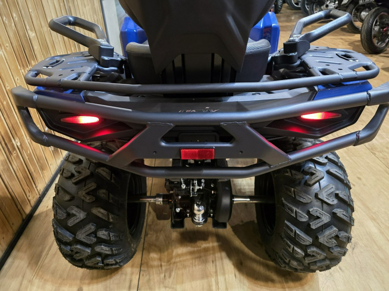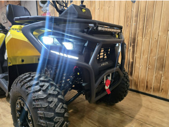 Za bezpieczeństwo odpowiadają hydrauliczne tarczowe hamulce z przodu i z tyłu, które gwarantują skuteczne i przewidywalne hamowanie nawet przy szybszej jeździe. Zawieszenie o dużym skoku świetnie tłumi nierówności i poprawia komfort prowadzenia na trudnym terenie.