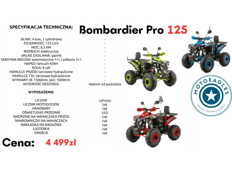 XTR Bombardier Pro 125 – quad terenowy 125 cm³ (Automat / Półautomat)