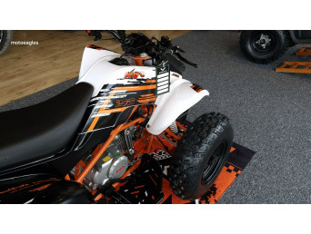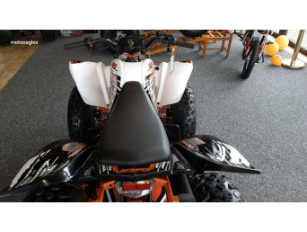 Bardziej doświadczeni quadowcy lubiący wyczynową jazdę docenią czterobiegową skrzynię biegów z przełożeniem wstecznym, wyświetlacz biegów w kokpicie oraz skuteczne hamulce tarczowe.